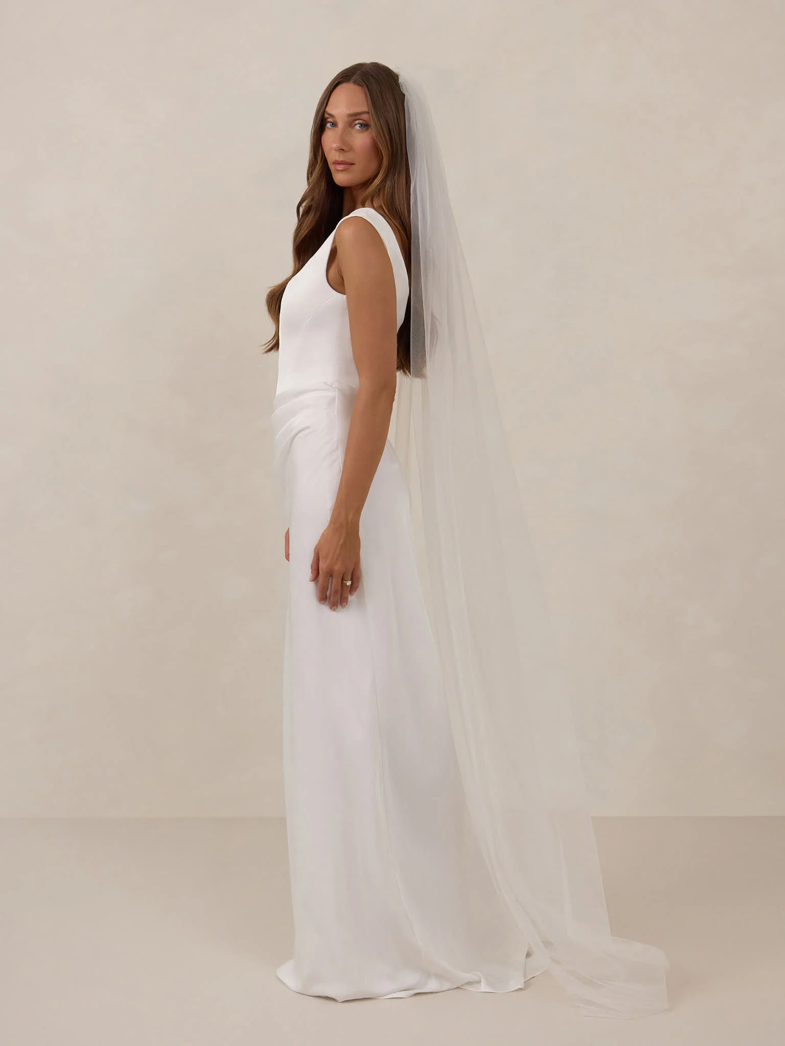 Elevate your bridal dress with our elegant Hudson Veil — the perfect finishing touch for your most memorable day. Crafted from delicate, lightweight tulle, this veil cascades gracefully from crown to floor, adding a timeless and ethereal charm to your wedding ensemble.